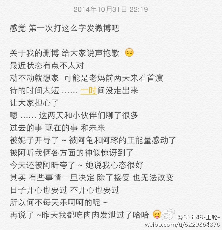 snh就像一个学校,总有人来,总有人走。希望以后璐宝都可以每天开开心心快快乐乐